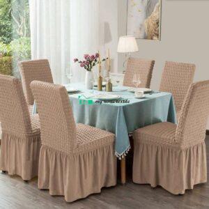 Σετ 6τμχ Ελαστικό Κάλυμμα Καρέκλας Με βολάν με πλάτη Μπέζ