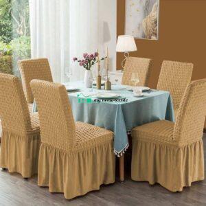 Σετ Ελαστικά Καλύμματα Καρέκλας Με Πλάτη Και Βολάν 6 Τεμάχια Μπεζ